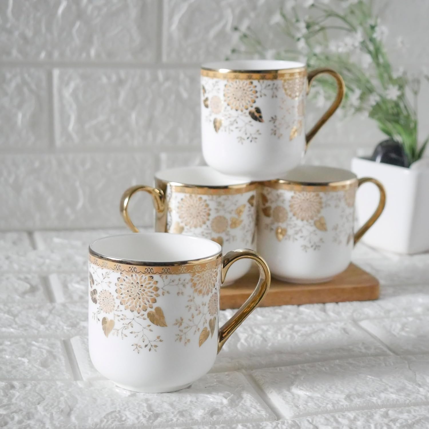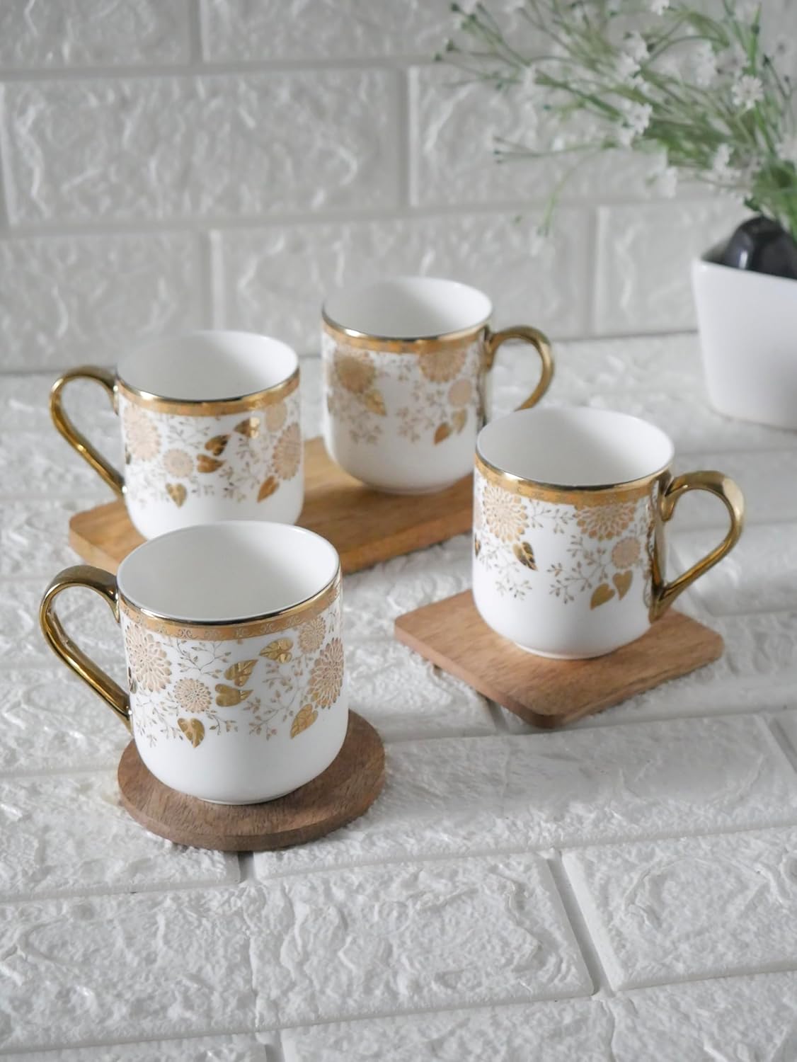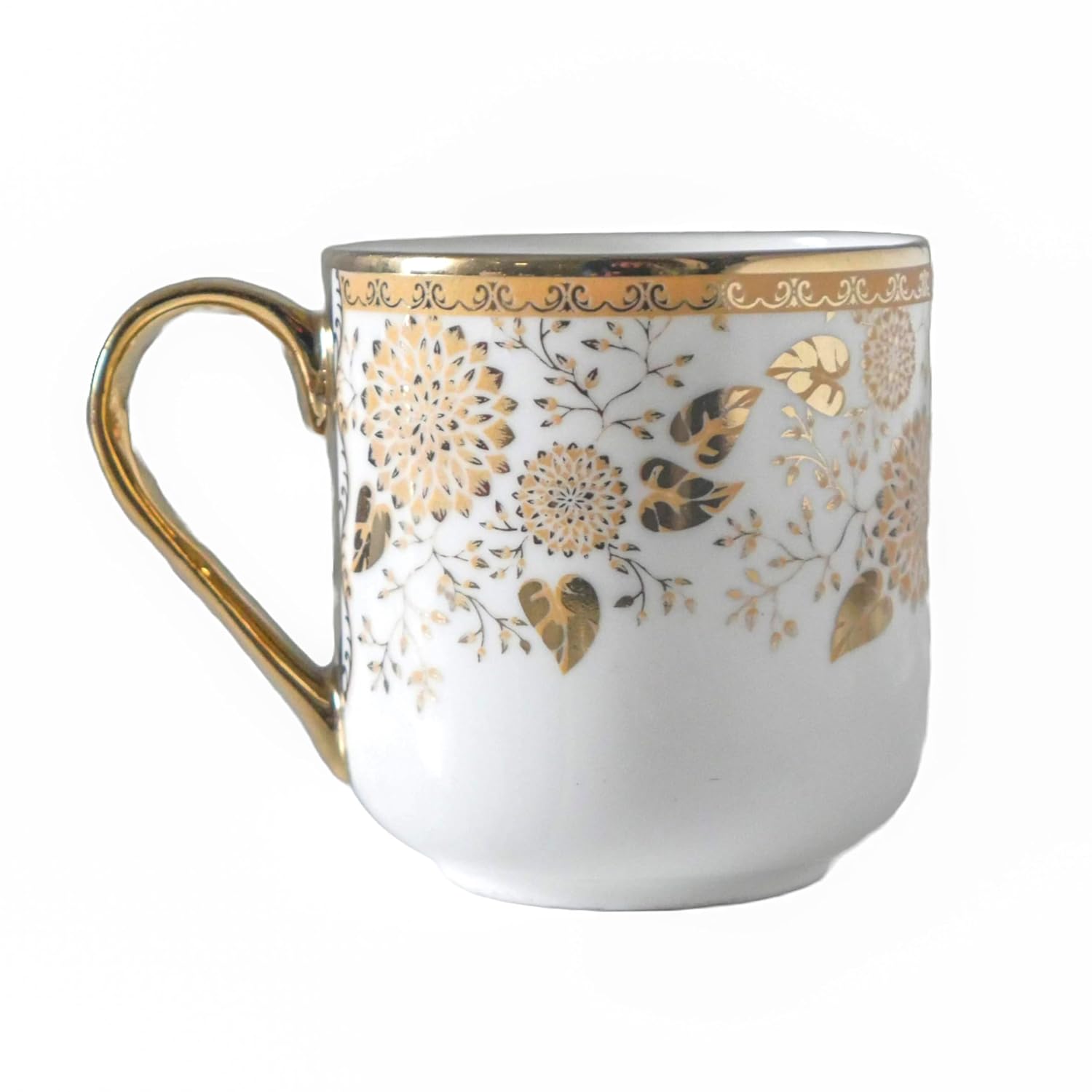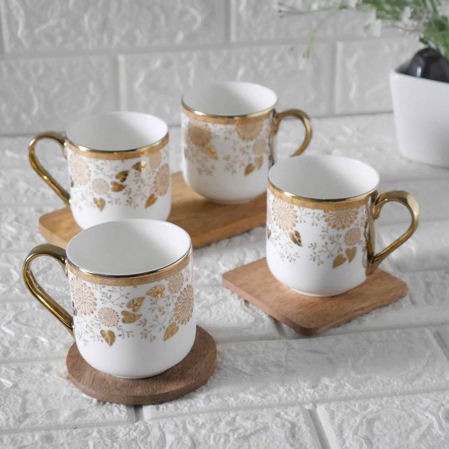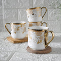 Premium Tea Leaf Design Ceramic Coffee & Tea Cup Set of 4, 180 ML, (NOT Microwave Safe)