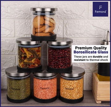 Round Borosilicate Glass Jar for Kitchen Storage | Kitchen Container Set and Storage Box, Glass Containers with SS Lid | Air Tight Containers for Kitchen Storage |Capacity (600ml)