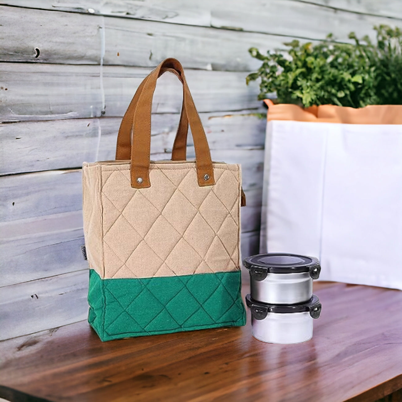 Stainless Steel Lunch Box Green Canvas Bag Femora, 350 ML, 2 Pcs